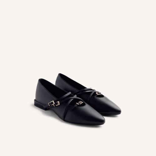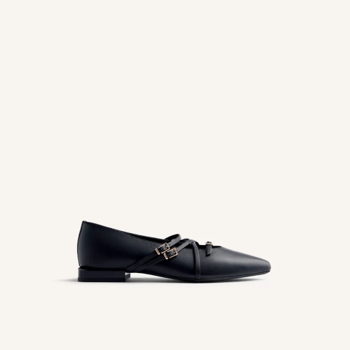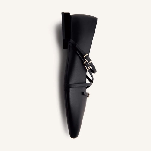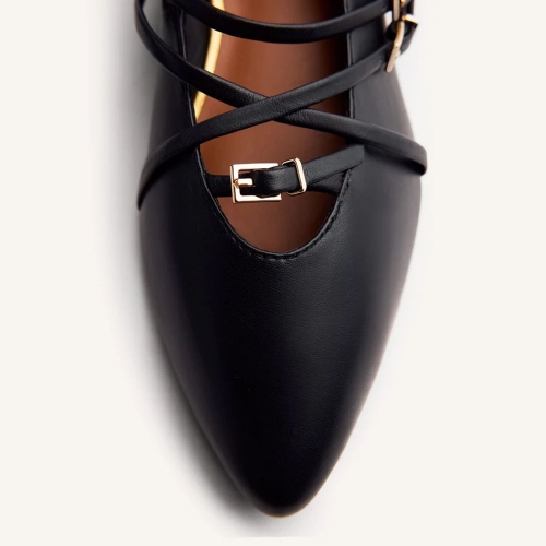 Bailarinas de piel con tiras y hebillas. Planta afilada. Cuentan con planta acolchada y cierres ajustables en el empeine. Altura tacón: 1,5 cm.