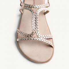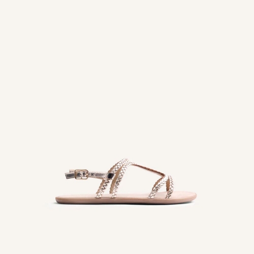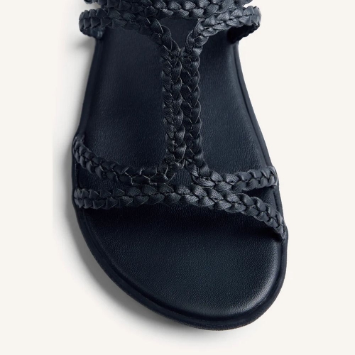 Sandalias planas de piel trenzada a mano. Diseñadas siguiendo las tendencias minimalistas para garantizar la pisada natural. Incluyen una plantilla de transición para facilitar una adaptación progresiva a quienes se inician en el calzado barefoot.