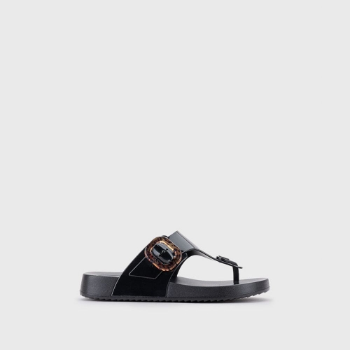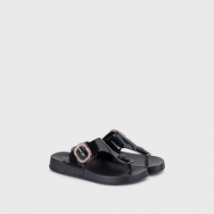 Sandalia de estilo esclava con acabado brillo y hebilla con estampado de leopardo.