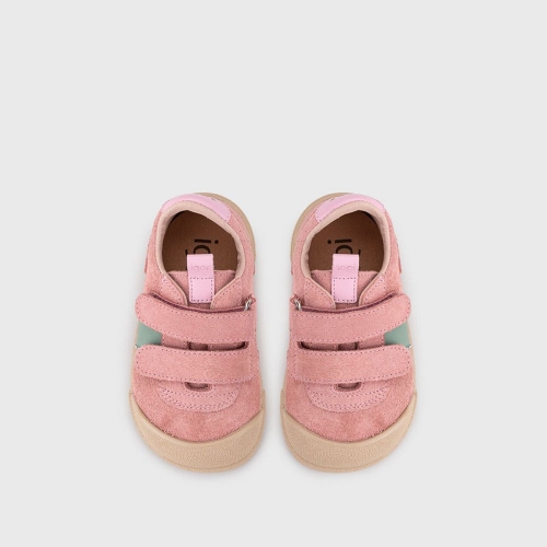 Deportivos de serraje de concepto barefoot wide, con la puntera más ancha, cero drop, flexible y blandito, plantilla extraíble y cierre adherente para mayor ajuste y autonomía.