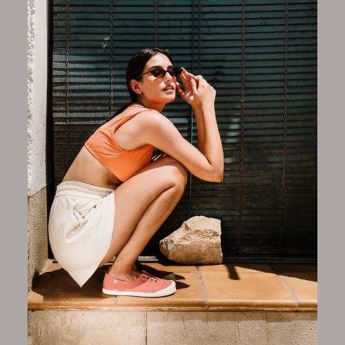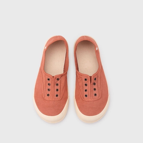 Zapatilla de lona de mujer 100% algodón, de concepto barefoot medium, cero drop, flexible, blandita y con plantilla extraíble. El tinte de nuestras lonas es irregular por su efecto lavado. Lavar en agua fría no sin antes extraer la plantilla.