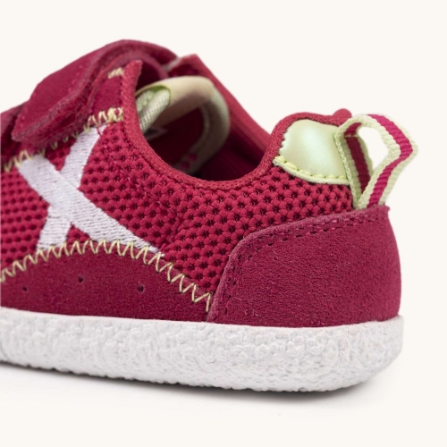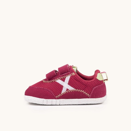 Las MUNICH BABY KODA W 21 están diseñadas para acompañar a los más pequeños en sus primeras grandes aventuras. Combinando un vibrante tono granate con detalles en contraste, estas zapatillas ofrecen la mezcla perfecta entre resistencia y transpirabilidad gracias a su cuerpo de malla técnica y refuerzos de serraje. Su cierre de doble velcro garantiza un ajuste seguro y facilita la autonomía de los niños al calzarse solos. La suela de goma blanca texturizada proporciona un agarre excepcional, ideal para corretear por el parque, asistir a la guardería o disfrutar de un fin de semana activo en familia. Un calzado robusto y lleno de estilo para los valientes que no dejan de explorar.
