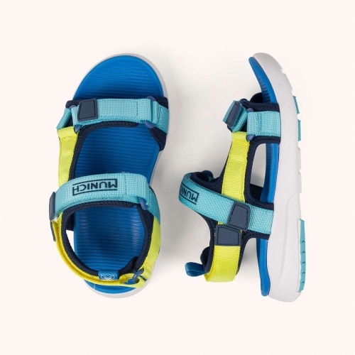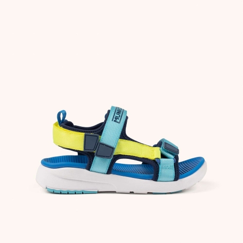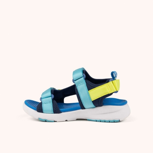 La MINI YOYO se presenta como la sandalia ideal para los más pequeños al combinar un diseño ligero con amplias aperturas que garantizan la máxima transpirabilidad durante los días más calurosos. Este modelo destaca por su llamativa combinación de azul intenso y amarillo flúor, incorporando un sistema de triple tira de velcro que facilita el calce autónomo y asegura una sujeción precisa tanto en el empeine como en el talón. Gracias a su plantilla anatómica azul y su suela de goma blanca, es el calzado perfecto para disfrutar con total seguridad de jornadas de juego en la piscina, paseos por la ciudad o cualquier actividad recreativa bajo el sol.