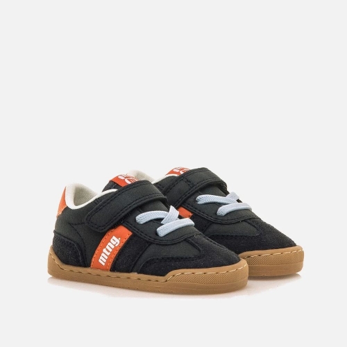 Zapatillas de color marino para bebé, modelo Free Baby de la marca Mustang. Con detalles en naranja y suela caramelo, este diseño deportivo combina cierre adhesivo y cordones elásticos en azul claro para facilitar el calce. Diseñada y desarrollada especialmente en colaboración con el Dr. Juanjo López, traumatólogo deportivo e infantil, para respetar el desarrollo natural del pie de los niños. Gracias a su puntera ancha permite el libre movimiento de los dedos dentro del zapato. Su suela tiene 3 mm de grosor y con zero drop (totalmente plana) respeta el natural desarrollo del pie del pequeño y sus elementos flexibles y torsionables hace que el pie del niño no esté encorsetado por la estructura del zapato. Las plantillas extraíbles facilitan comprobar si la talla del calzado es la correcta para tu hijo. Además, su fácil apertura facilita que el niño pueda descalzarse y calzarse de forma autónoma. Acompaña los primeros pasos de tu bebé con Mustang. Con certificado VEGANO sellado por INESCOP, el cual garantiza que la naturaleza química principal del material no se corresponde con fibras de origen animal.