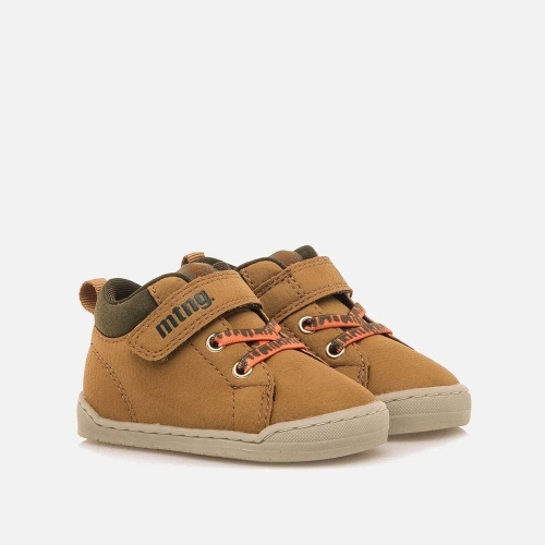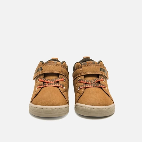 Zapato de color camel para bebé, modelo Free Baby de Mustang. Este zapato abotinado combina un estilo urbano con un enfoque funcional. Presenta cordones elásticos estampados en tonos anaranjados, cierre adhesivo para un ajuste fácil y cuello acolchado en tono kaki que aporta comodidad adicional. Su diseño de caña media proporciona sujeción sin limitar el movimiento. Diseñada y desarrollada especialmente en colaboración con el Dr. Juanjo López, traumatólogo deportivo e infantil, para respetar el desarrollo natural del pie de los niños. Gracias a su puntera ancha permite el libre movimiento de los dedos dentro del zapato. Su suela tiene 3 mm de grosor y con zero drop (totalmente plana) respeta el natural desarrollo del pie del pequeño y sus elementos flexibles y torsionables hace que el pie del niño no esté encorsetado por la estructura del zapato. Las plantillas extraíbles facilitan comprobar si la talla del calzado es la correcta para tu hijo. Además, su fácil apertura facilita que el niño pueda descalzarse y calzarse de forma autónoma. Acompaña los primeros pasos de tu bebé con Mustang. Con certificado VEGANO sellado por INESCOP, el cual garantiza que la naturaleza química principal del material no se corresponde con fibras de origen animal.