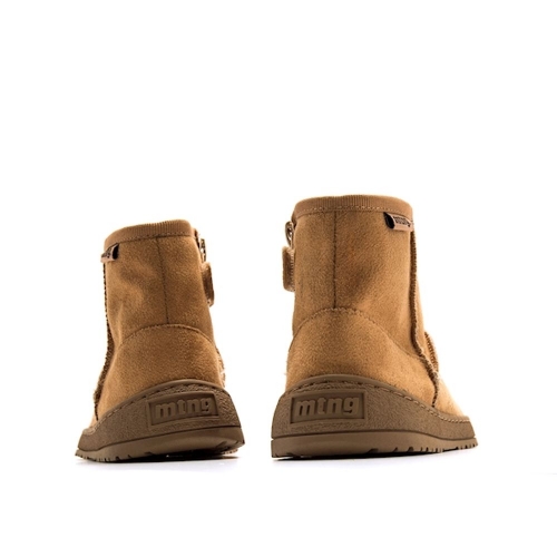 Bota respetuosa Mustang en ante camel con forro cálido, suela flexible y cremallera lateral. Cómoda, ligera y perfecta para el frío.