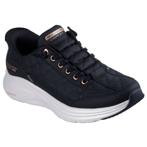 PUFFER FIT™ Adéntrate en la lujosa y acogedora comodidad de las Skechers Hands Free Slip-ins®: Contour Foam™ - Cozy Fit™ Golden Hour. Diseñado con nuestro Heel Pillow™, este modelo sin cordones presenta una parte superior acolchada Cozy Fit™ y una capa superpuesta de duraleather con cordones elásticos ya atados, amortiguación Contour Foam™ en la media suela y nuestra característica plantilla con amortiguación Skechers Air-Cooled Memory Foam™.