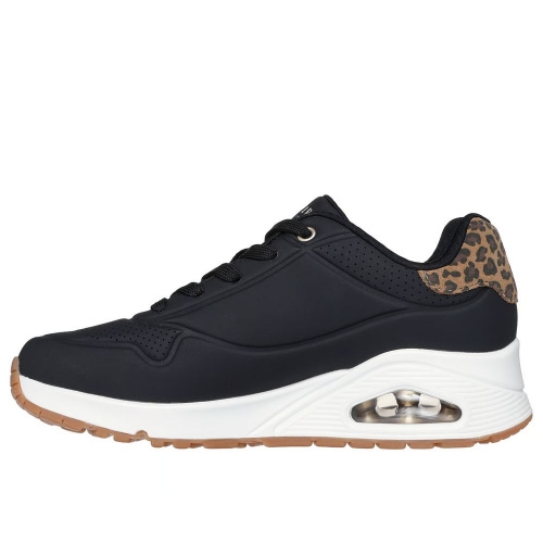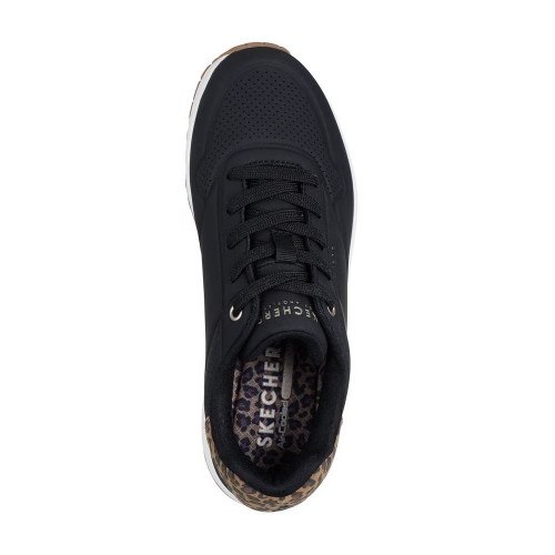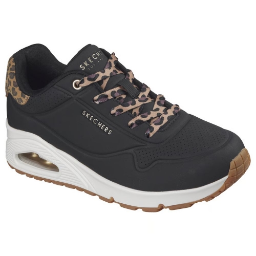 Anda sobre las nubes con la salvaje comodidad de las Skechers Street™ Uno - Jungle Nite. Esta moderna zapatilla con cordones presenta una parte superior de material sintético, talonera con estampado de leopardo, una plantilla Skechers Air-Cooled Memory Foam™ y una media suela visible Skech-Air® con cámara de aire.