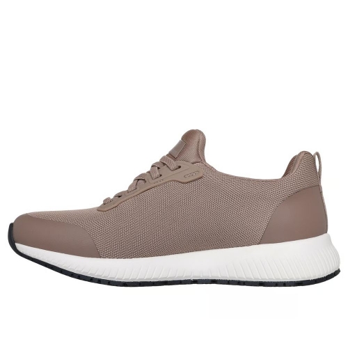 La comodidad y la protección se combinan en el estilo cómodo de las Skechers Work™: Squad. Modelo funcional deportivo holgado con parte superior de knit plano con tratamiento 3M® Scotchgard® y tejido sintético, cordones elásticos fijos, suela con tracción antideslizante y plantilla Skechers Memory Foam™ con amortiguación.