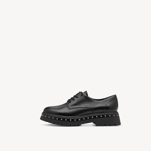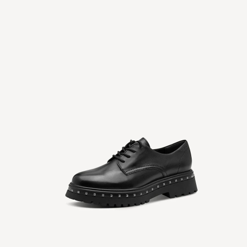 Luce con estilo con estos zapatos Tamaris con cordones que potencian cada movimiento: perfectos para tus días creativos en la oficina, aventuras espontáneas después del trabajo y fines de semana relajados con amigas. La suela gruesa y texturizada te da un impulso seguro de 50 mm, mientras que los ingeniosos detalles de la hebilla y las llamativas tachuelas resaltan tu estilo único. Adopta la elegancia moderna y el chic urbano con un zapato diseñado para mujeres que aman explorar la ciudad y celebrar su individualidad a cada paso.