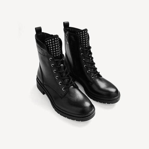 Sal con confianza: estas botas negras de plataforma con cordones combinan un estilo urbano moderno con una suavidad reconfortante gracias a su suave plantilla de espuma viscoelástica. La robusta plataforma de 45 mm y la suela con agarre ofrecen una comodidad fiable para paseos por la ciudad o paseos campestres. Las prácticas cremalleras y cordones facilitan su colocación, mientras que los elegantes detalles metálicos les aportan un toque de estilo. Celebra tu individualidad a diario y siéntete empoderada, dondequiera que te lleven tus aventuras.