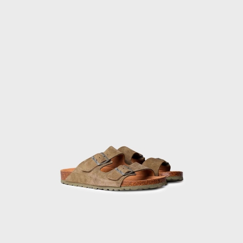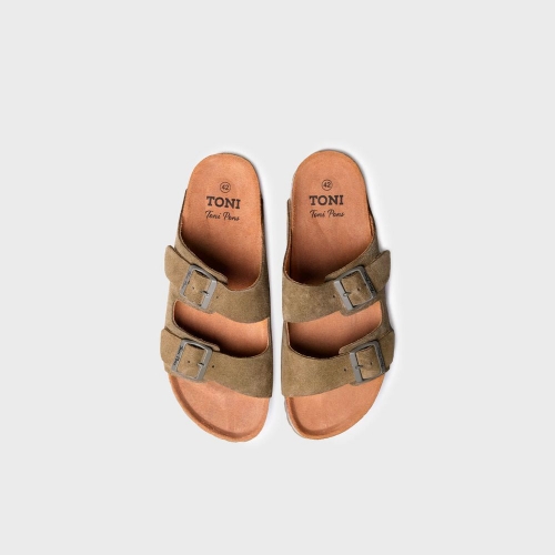 Esta sandalia de hombre con hebillas tipo BIO está elaborada en serraje. La suela de corcho y goma EVA tiene una altura total de 2,5 cm. La planta está forrada en serraje para mayor confort. Cuenta con dos tiras superiores con hebillas ajustables para aportar la mayor sujeción.