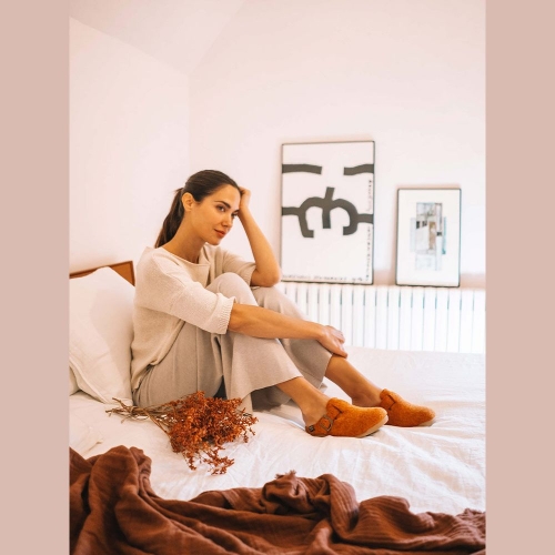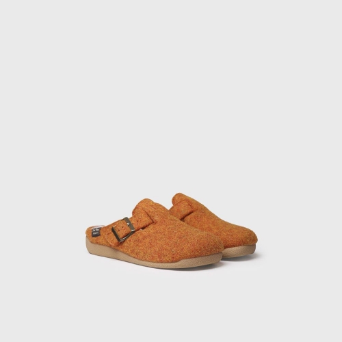 Esta zapatilla de casa de mujer se elabora en fieltro. Dispone de una hebilla para asegurar un ajuste y sujeción perfecta al pie. La suela es de goma antideslizante y tiene 3 cm de grosor. Cuenta con una plantilla interior forrada en suave pelo sintético para asegurar el mayor confort.
