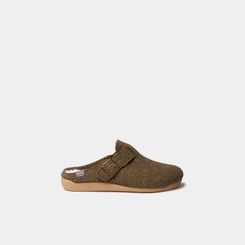 Esta zapatilla de casa para hombre tiene un diseño tipo zueco. Cuanta con una hebilla regulable para poder ajustar esta slipper. Un modelo muy cómodo que te acompañará todo el invierno.