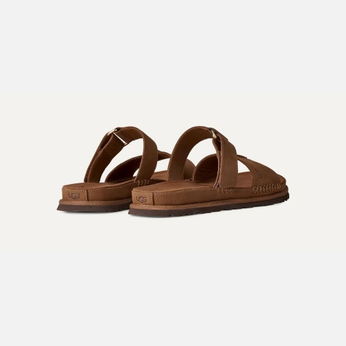 La misma comodidad UGG® de las sandalias Goldenstar que te encanta, en una nueva silueta elegante y chic. Nuestras sandalias de perfil bajo GoldenGaze dan un toque sofisticado a cualquier atuendo, por eso son las acompañantes perfectas para atender tu agenda social este verano. Una tira regulable para adaptar el ajuste y todos los detalles de primera calidad, como el empeine de ante ultrasuave, el forro de piel sedosa o la afelpada plantilla de microfibra, hacen de esta una sandalia que dará que hablar. Todo ello sobre una suela de EVA de caña de azúcar más cómoda que caminar entre algodones. No hay duda, esta sandalia es tu modelo para este verano.