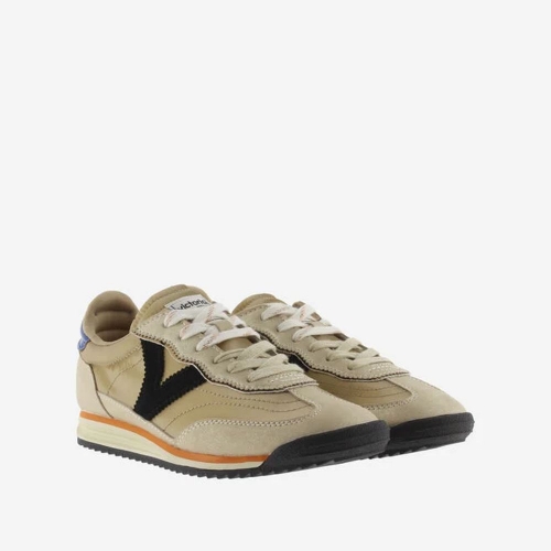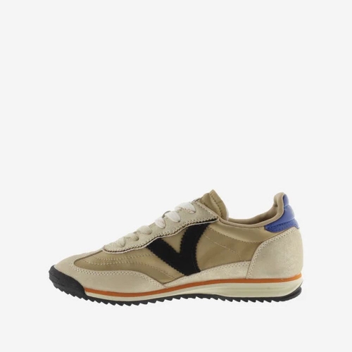 Sneakers para mujer confeccionadas en nylon con un acabado metalizado en combinación con piezas superpuestas también metalizadas y sintéticas. V del lateral en color negro en serraje y pieza trasera con el logotipo de la marca en colores efecto piel en contraste. Cierre mediante cordones bicolor. Suela bicolor y patín dentado en negro que favorece un mejor agarre.