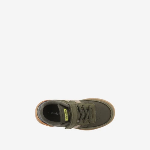Zapatillas deportivas para niños fabricadas en material efecto piel y piezas de efecto serraje al tono, para un estilo duradero y moderno. Detalle de color en la V del lateral y en la pieza trasera. Cierre mediante cordones elásticos al tono y una tira adhesiva para un ajuste cómodo y fácil de poner. La suela en color caramelo añade un toque único completando el diseño juvenil y versátil de estas zapatillas.