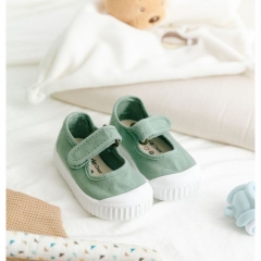 Merceditas de lona para niña fabricadas en combinación de algodón reciclado DREC® (Dyeable Recycled Eco Cotton) y algodón ecológico cultivado, hilado y tejido en España. Llevan puntera de goma y cierre mediante tira adherente que fomenta la autonomía de los niños para calzarse. Modelo sostenible que cuenta con materiales reciclados en su composición. Incluye una plantilla interior para mayor confort y son muy fáciles de lavar.