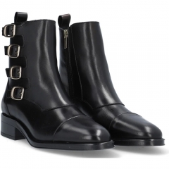 Botín para mujer ALPE COUTURE elaborado en piel ( baby silk) de tonalidad marrón con tacón de 3, 5 cm, suela antideslizante y puntera redondeada, equipado con cierre de cremallera y caña baja.