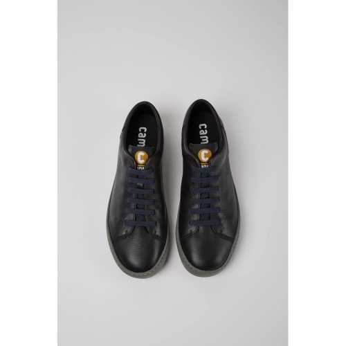 Zapato negro para hombre. Piel y tejido con suela de EVA y cordones elásticos.