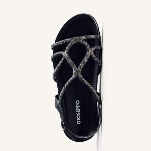 Sandalias planas de piel con pedrería. Cuentan con cierres ajustables en el tobillo y planta anatómica, que favorece una posición correcta y evita las sobrecargas musculares.