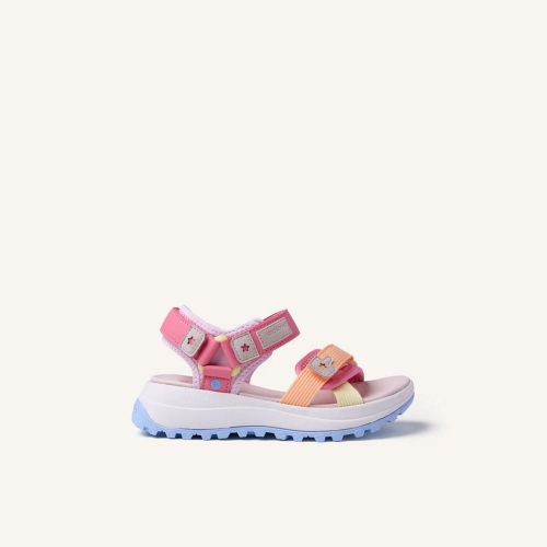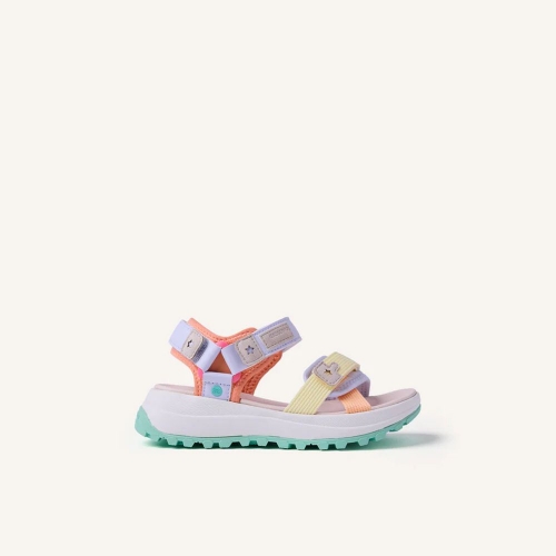 Sandalias estilo deportivas con contrastes de color. Suela tipo track. Cuentan con cierres ajustables en el empeine y en el tobillo.