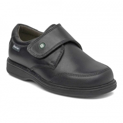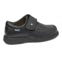 Zapato colegial de color azul con cierre de velcro. Producto de piel de máxima calidad y resistencia. Elaborado con piel natural curtida de forma artesanal y caracterizada por el confort que le confiere al zapato. El forro es transpirable y de material textil. La plantilla del zapato es extraíble. La suela es resistente y de caucho natural antideslizante de gran durabilidad.