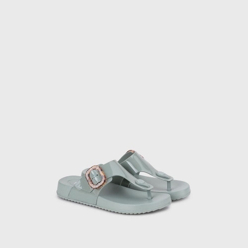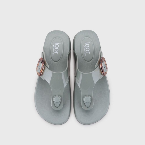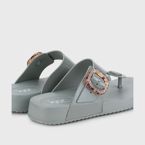 Sandalia de estilo esclava con acabado brillo y hebilla con estampado de leopardo.