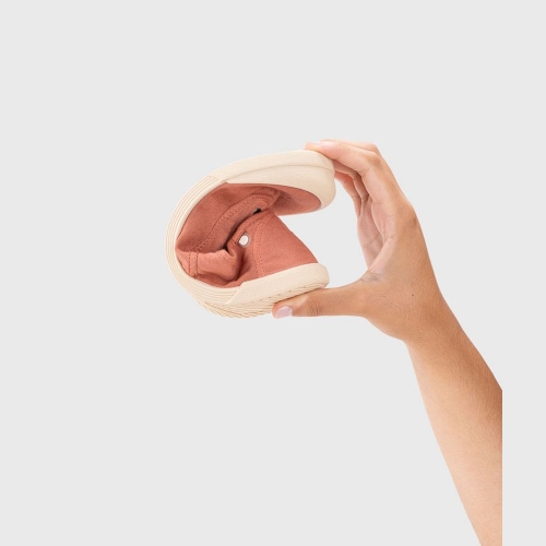 Zapatilla de lona de mujer 100% algodón, de concepto barefoot medium, cero drop, flexible, blandita y con plantilla extraíble. El tinte de nuestras lonas es irregular por su efecto lavado. Lavar en agua fría no sin antes extraer la plantilla.
