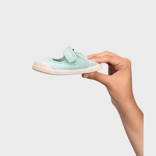 Zapatilla de lona de estilo merceditas 100% algodón, de concepto barefoot, cero drop, flexible, blandita y con plantilla extraíble. Lavar en agua fría no sin antes extraer la plantilla.
