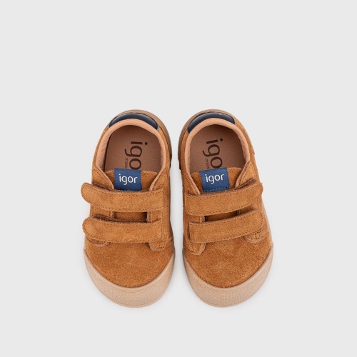 Deportivos de piel casual de concepto barefoot, cero drop, flexible y blandito, plantilla extraíble y cierre adherente para mayor ajuste y autonomía.