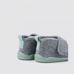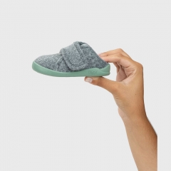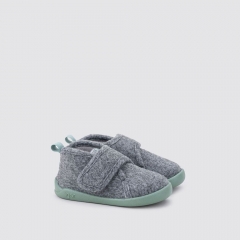 Zapatilla de estar por casa para niños y niñas con detalle de gatito, de concepto barefoot, cero drop, flexible y blandita, fabricada en un tejido súper blandito, calentito y suave.
