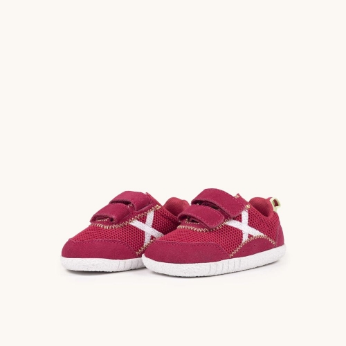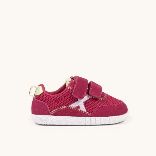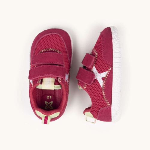 Las MUNICH BABY KODA W 21 están diseñadas para acompañar a los más pequeños en sus primeras grandes aventuras. Combinando un vibrante tono granate con detalles en contraste, estas zapatillas ofrecen la mezcla perfecta entre resistencia y transpirabilidad gracias a su cuerpo de malla técnica y refuerzos de serraje. Su cierre de doble velcro garantiza un ajuste seguro y facilita la autonomía de los niños al calzarse solos. La suela de goma blanca texturizada proporciona un agarre excepcional, ideal para corretear por el parque, asistir a la guardería o disfrutar de un fin de semana activo en familia. Un calzado robusto y lleno de estilo para los valientes que no dejan de explorar.