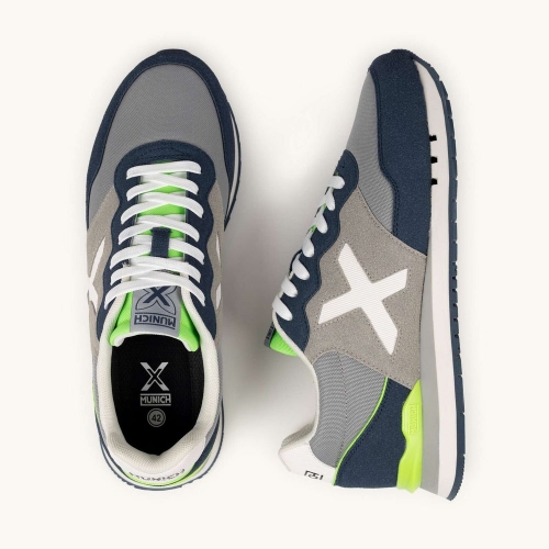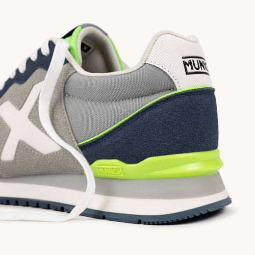 Estas zapatillas representan la versatilidad casual y urbana definitiva al rescatar la esencia del calzado retro running con un diseño contemporáneo. Su combinación de texturas en serraje y tejido técnico en tonos grises y azul marino se ve realzada por vibrantes toques verde lima en el talón y la lengüeta, creando un equilibrio visual perfecto para el día a día. La suela de goma bicolor garantiza una pisada cómoda y duradera, ideal para recorrer la ciudad, acudir a reuniones informales o disfrutar de largos paseos de fin de semana con un estilo deportivo impecable.