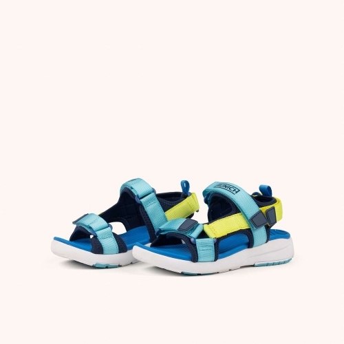 La MINI YOYO se presenta como la sandalia ideal para los más pequeños al combinar un diseño ligero con amplias aperturas que garantizan la máxima transpirabilidad durante los días más calurosos. Este modelo destaca por su llamativa combinación de azul intenso y amarillo flúor, incorporando un sistema de triple tira de velcro que facilita el calce autónomo y asegura una sujeción precisa tanto en el empeine como en el talón. Gracias a su plantilla anatómica azul y su suela de goma blanca, es el calzado perfecto para disfrutar con total seguridad de jornadas de juego en la piscina, paseos por la ciudad o cualquier actividad recreativa bajo el sol.