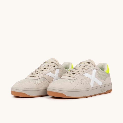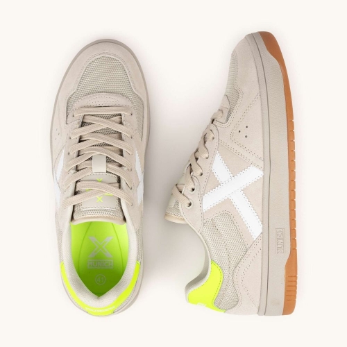 Las STILO combinan una estética casual con un diseño contemporáneo que resalta por su combinación de texturas en malla técnica y ante en tonos arena, acentuados por un vibrante detalle amarillo flúor en el talón y la clásica X lateral en blanco. Esta silueta de aires retro pero espíritu moderno es perfecta para recorrer la ciudad con estilo o para aportar un toque de luz a tus estilismos más neutros del día a día. Además, Lavadora este modelo se puede poner en la lavadora, lo que te permite mantener la claridad de sus tonos originales siempre impecable con un mantenimiento cómodo y sencillo.