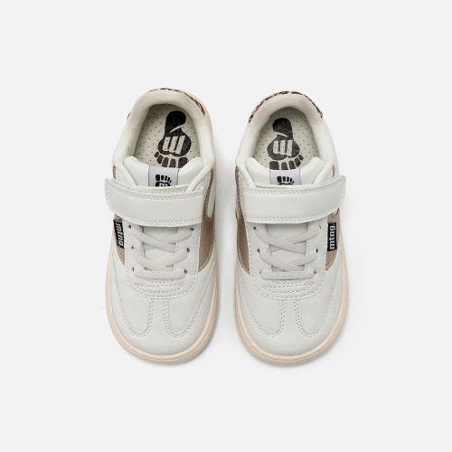 Zapatillas barefoot lavables de color blanco para niña, modelo Free de la marca Mustang, estilo urbano. Incorpora detalles metalizados dorados y talón con estampado animal print de leopardo que aportan un toque distintivo al diseño. El cierre adhesivo y los cordones garantizan un ajuste cómodo y práctico. Diseñado y desarrollado especialmente en colaboración con el Dr. Juanjo López, traumatólogo deportivo e infantil, para respetar el desarrollo natural del pie del niño y la niña. Gracias a su puntera ancha permite el libre movimiento de los dedos dentro del zapato. Las plantillas extraíbles facilitan comprobar si la talla del calzado es la correcta para tu hijo. Además, su fácil apertura facilita que el niño pueda descalzarse y calzarse de forma autónoma. Con certificado VEGANO sellado por INESCOP, el cual garantiza que la naturaleza química principal del material no se corresponde con fibras de origen animal.