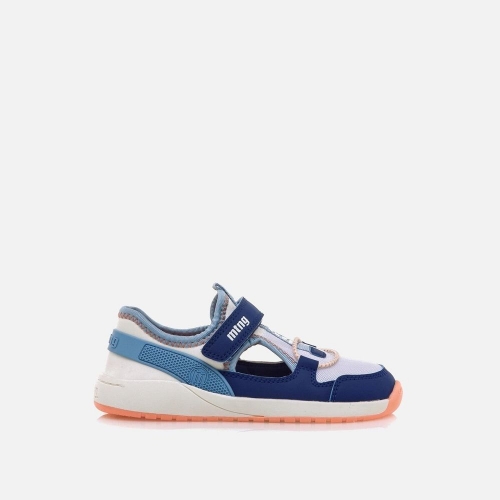 Zapatillas cangrejeras FREE de color azul para niño de la marca Mustang. Estas zapatillas destacan por su diseño abierto y transpirable, con detalles en blanco y suela en color melocotón. Combinando diversos tonos de azul. Diseñada y desarrollada especialmente en colaboración con el Dr. Juanjo López, traumatólogo deportivo e infantil, para respetar el desarrollo natural del pie del niño y la niña. Gracias a su puntera ancha permite el libre movimiento de los dedos dentro del zapato. Las plantillas extraíbles y las marcas de los dedos en la misma, facilita comprobar si la talla del calzado es la correcta para tu hijo. Además, su fácil apertura facilita que el niño pueda descalzarse y calzarse de forma autónoma. ¡Enamórate de FREE de Mustang!