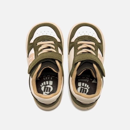 Zapatillas Free de Mustang de color verde kaki con detalles beige, diseñadas para niño y pensadas para un uso diario activo. Su cierre combinado de cordones elásticos y tira adherente permite un ajuste práctico y rápido. El diseño sport con logo lateral en contraste y suela en tono claro aportan un toque retro y versátil ideal para combinar con distintos looks. Diseñado y desarrollado especialmente en colaboración con el Dr. Juanjo López, traumatólogo deportivo e infantil, para respetar el desarrollo natural del pie del niño y la niña. Gracias a su puntera ancha permite el libre movimiento de los dedos dentro del zapato. Las plantillas extraíbles facilitan comprobar si la talla del calzado es la correcta para tu hijo. Además, su fácil apertura facilita que el niño pueda descalzarse y calzarse de forma autónoma. Con certificado VEGANO sellado por INESCOP, el cual garantiza que la naturaleza química principal del material no se corresponde con fibras de origen animal.