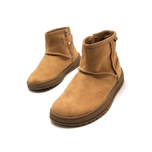 Bota respetuosa Mustang en ante camel con forro cálido, suela flexible y cremallera lateral. Cómoda, ligera y perfecta para el frío.
