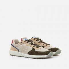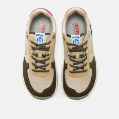 Zapatillas de color beige para mujer, modelo Free Apolo de la marca Mustang con diseño deportivo. Este modelo combina diferentes texturas en el corte y colores en contraste como el beige, marrón y el talón metalizado. Diseñadas y desarrolladas especialmente en colaboración con el Dr. Juanjo López, traumatólogo deportivo, para respetar el desarrollo natural del pie. Se trata de un calzado minimalista que gracias a su puntera ancha, suela totalmente plana (cero drop) y flexibilidad, mejora la anatomía del pie y favorece una mejor posición del mismo. Se vende con una plantilla de transición para hacer el cambio de calzado convencional a minimalista de manera progresiva. Con certificado VEGANO sellado por INESCOP, el cual garantiza que la naturaleza química principal del material no se corresponde con fibras de origen animal.