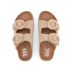 Sandalia tipo bio en ante con dos hebillas con adorno.