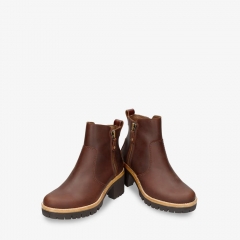 Botín de mujer con tacón. Piel Velour Cuero WATERPROOF. Cierre de cremallera. Forro interior de Piel. Plantilla anatómica extraíble. Suela de caucho TR, flexible y resistente. Altura caña: 10,5 cm. Altura tacón: 7.5 cm. 100% Hecho en España.