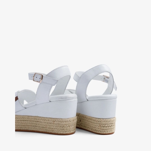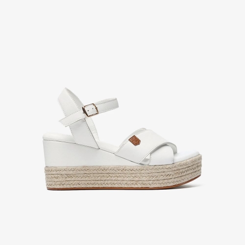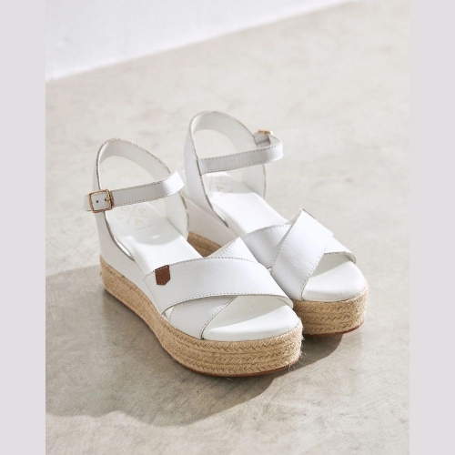 Sandalia de cuña baja para mujer con palas entrelazadas en blanco.