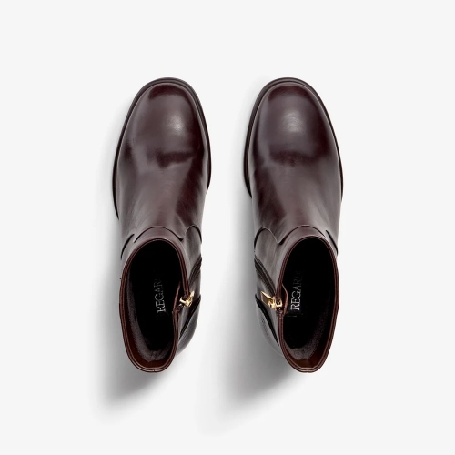 Este botín presenta una silueta elegante, confeccionado en piel Delice Castagno con costuras acentuadas que le dan un acabado moderno. Forrado con tela suave para mayor comodidad, este botín se asienta sobre una suela de goma resistente que proporciona una tracción fiable. Se cierra con cremallera y tiene un tacón cuadrado de 65 mm