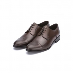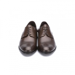 Zapato de caballero tipo blucher en piel bahía negro con suela de cuero. Detalle de línea recta en la punta.
