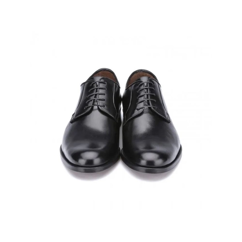 Zapato de caballero tipo blucher de ancho especial en gaucho negro con suela de cuero.