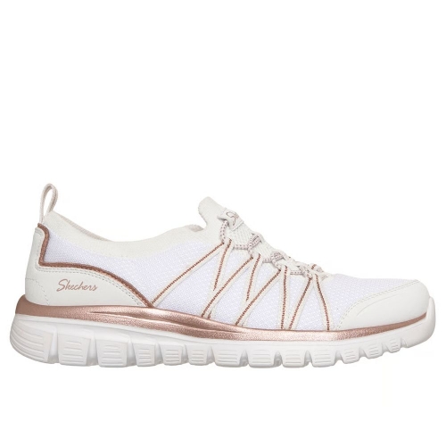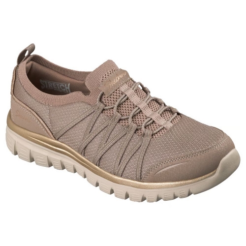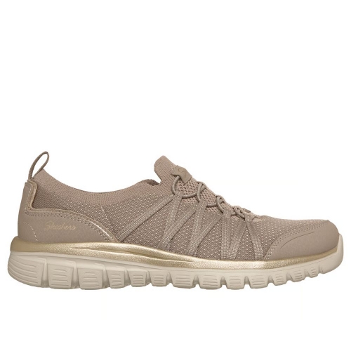 Adorna tus pies con la comodidad de las Skechers Graceful - Purecrush. Este cómodo modelo vegano cuenta con una parte superior de knit Stretch Fit™ con capas superpuestas de material sintético, un ribete metalizado, cordones elásticos fijos y una plantilla con amortiguación Skechers Air-Cooled Memory Foam™.