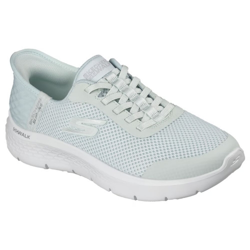 Disfruta de la comodidad y la amortiguación que te ofrece la Skechers Hands Free Slip-ins®: GO WALK Flex™ - Grand Entry. Estas deportivas veganas sin cordones, diseñadas con nuestro sistema Heel Pillow™, cuentan con una parte superior de tejido sintético y malla con cordones elásticos, una plantilla Skechers Air-Cooled Memory Foam™ y amortiguación ligera ULTRA GO®.