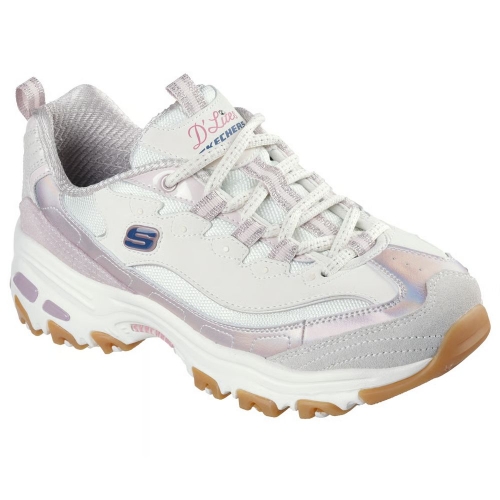 El estilo icónico se une al brillo en Skechers D'Lites® - Dazzling Shine. Este diseño casual con cordones presenta una parte superior en capas de cuero, duraleather y malla y una cómoda plantilla con amortiguación Air-Cooled Memory Foam™.